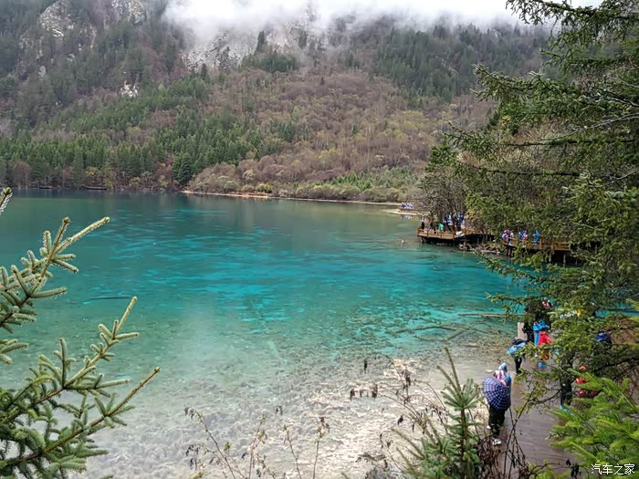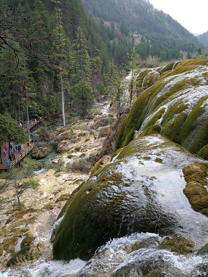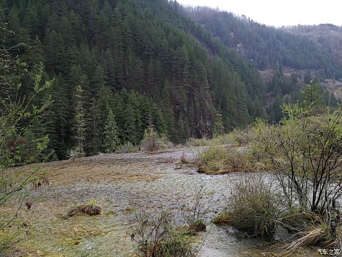 来到另一侧的日则沟,神奇的是这边只有雨没有一片雪。目前九寨沟只是部分开放,这边只能到五花海,再往高处的景点都还没开。