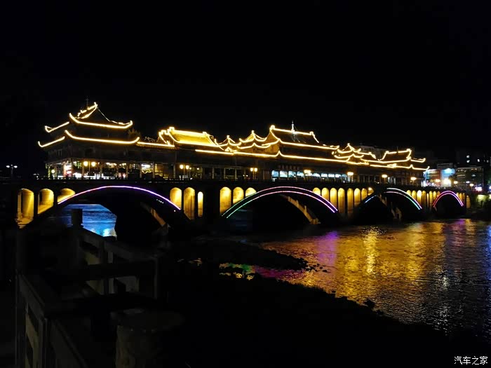 雅安廊桥横跨青衣江上,是目前国内最长最大的廊桥,也是雅安城市标志性建筑,夜景十分漂亮。