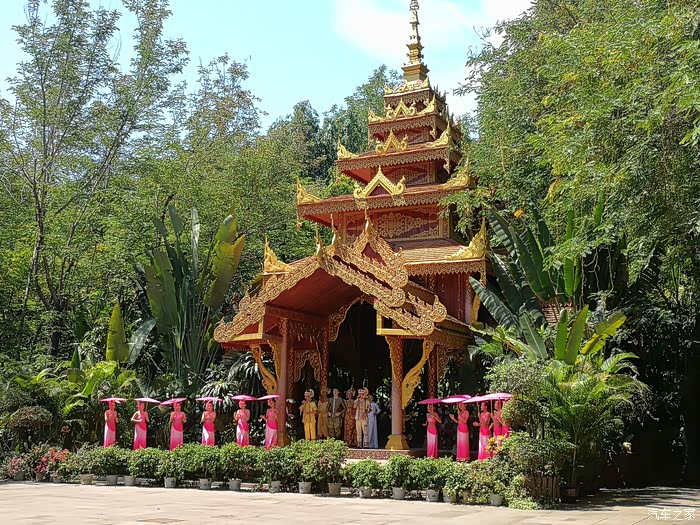 第二天主要游览曼听公园,大佛寺和大金塔。曼听公园以前是傣王御花园,已有1300多年的历史。园内有山丘和河道,又有民族特色浓郁的人文景观,是个天然的村寨式公园,景区集中体现了"傣王室文化、佛教文化、傣民俗文化"三大主题特色。