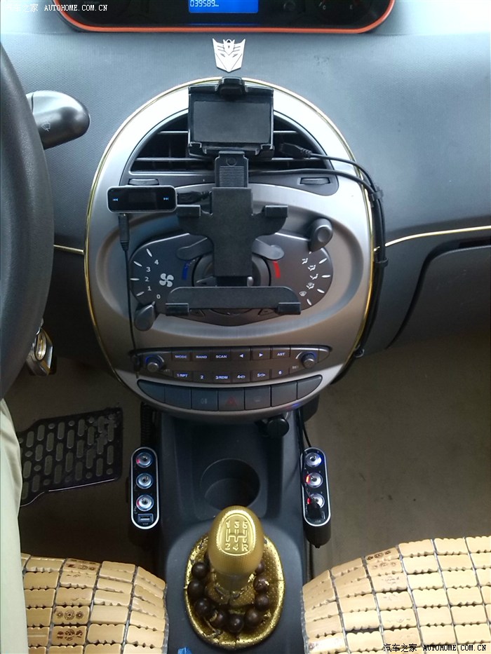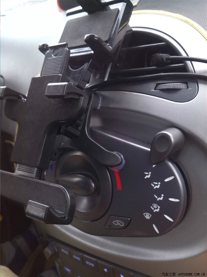 一直想改中控导航,但一学习车友的改装就心疼,那个拆啊,割啊,还有繁琐的接线,瞬时没有了兴趣,老外也有改装玩家,那玩的都是美金啊,又是做模具,又是挖啊,那个割啊!真**,但效果那是刚刚的,看着都流口水,不过那得有Money和超强的动手能力,呵呵呵,作为屌丝的我可没这闲钱搞这些,所以经常留意是不是用什么支架能固定PAD,终于让我找到了,但纠结的是扣勾安装得扣在单边出风口,这样导致PAD不在正中,正发呆着怎么办突然想到我有热熔胶枪,可以把三个脚粘在面板上,搞定,既不挡出风口,又不挡调风旋钮,完全在不影响原中控任何功能情况下固定mini支架,哈哈,瞬间又高 大 上了。。。