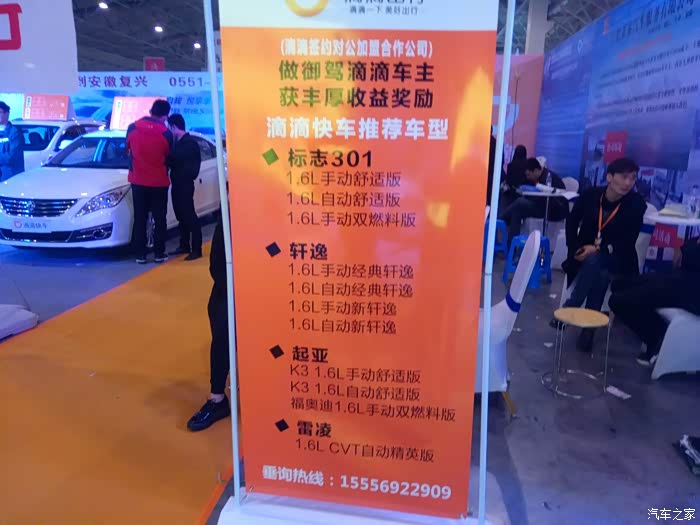 春季车博会首次携手滴滴快车设立网约车专区,成为一大突破。“这是‘滴滴’在合肥首次与车展合作,参展品牌包括别克、丰田、日产,现代。”“滴滴”相关负责人说,在现场网约车专区内,所有展示的车辆均符合网约车新政,广汽丰田雷凌/双擎、别克15N自动精英型、现代朗动/领动智能型,不但能跑网约车,作为家用车依然理想。届时,在会展现场,还会安排工作人员指导市民学习网约车新政以及了解如何考网约车驾驶员从业资格证。拍得不好!请车友们多多包含!!!