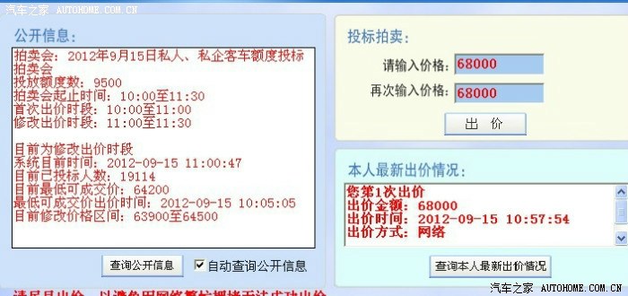 这时另一台电脑要起作用了 这台的目的是防止万一的 这台需要在出价栏里输入 比目前最低价高500~600的一个价格 但这个时间你可能还不能输入 因为它有价格上限设置 但你可以先写好价 一旦最低中标价超过前一台电脑 这台利马出价!