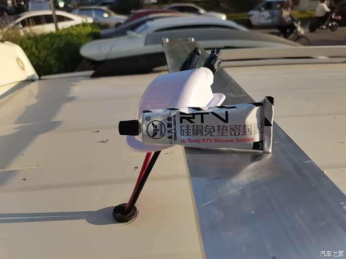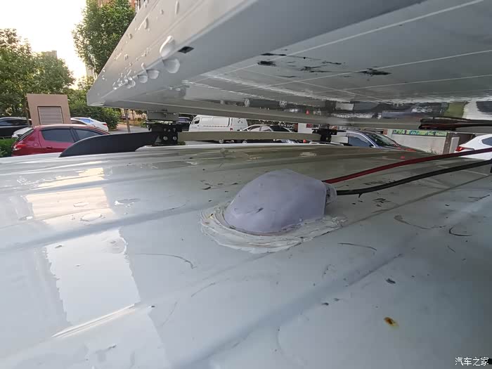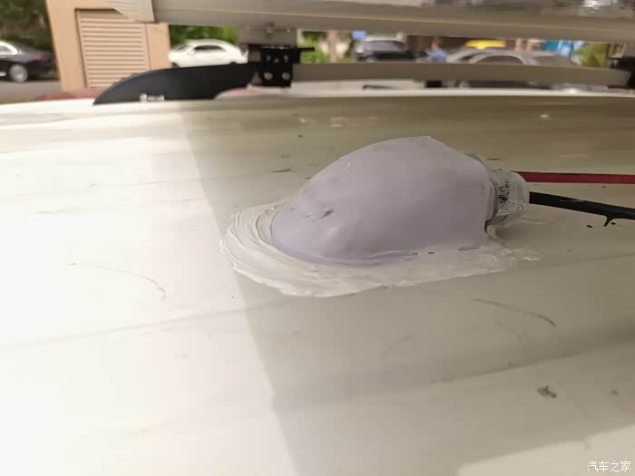 外围涂抹白色密封胶 起到防水作用 要不外面下大雨车里下小雨