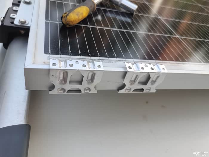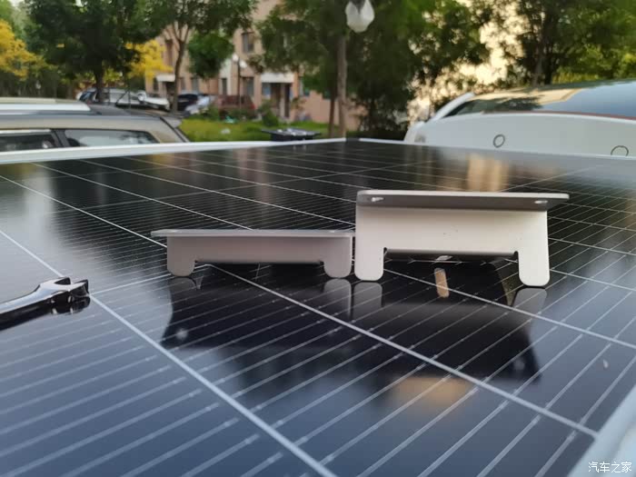 太阳能板安装固定支架选择两款高低不同的铝合金支架,前低后高一来吸收更强的太阳光 、二来后期清洗维护方便。