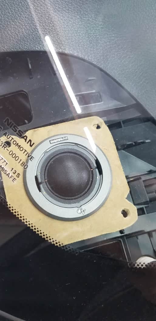 丹拿的高音头造型和原车不匹配,老板对比拆下来的海豚高音头尺寸做了个垫子,哈哈,因为打算尽可能原模原样,所以没做倒模,原车位置也不错啊