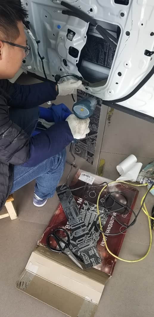 谈到这次音响升级,还是要感谢高港区道声改装店的栾老板,从中午十一点开工,一直忙活到晚上八点,看着他布线搞接头,真是感叹,不愧是专业人士