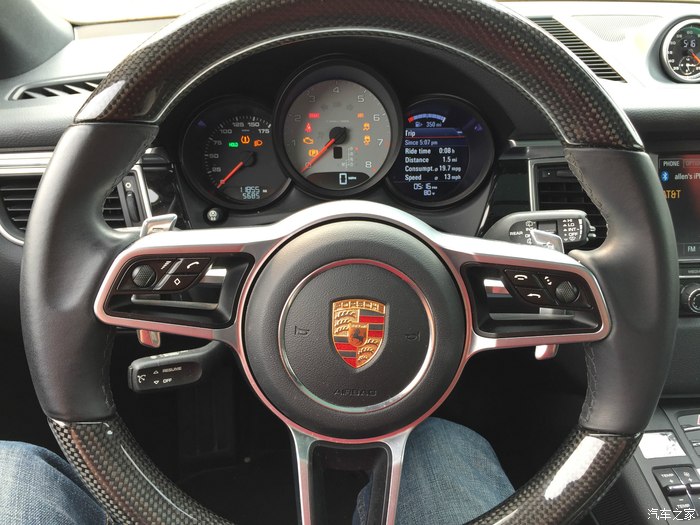 3. 接下来是车的性能。 Macan S 3.0 V6 发动机,最大功率340 马力,在普通模式下0-100 5.2s, 在运动+ 模式下4.8s,当然这些是官方数据,本人没有实测,但是加速的直观感觉是非常凶猛的,每次上高速,油门踩到底,推背是非常强烈的,到120MPH/190公里每小时,还是很轻松很稳的。 对了,说到这一定,我发现Macan 在急加速的适合,排气会有爆破声,不知道是好是坏,但是我听起来是挺爽的! 运动+ 开启以后,油门非常灵敏,跟打了鸡血似的,在这里我要介绍一下,运动+模式下的弹射起步,在车静止情况下,猜住刹车,然后以最快的速度油门踩到底,注意是一定要踩到底,在油门的底部有一个类似弹簧的东西,会根据咯噔一声,然后仪表盘就会显示发射!! 对于运动+, 我个人觉得娱乐大于实用,在这半年来,我总共用这东西不上5次,而且开启+模式后,耗油哇哇的,所以感觉没什么用, 普通运动模式下已经很好了。