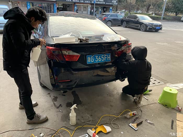 尾灯也贴了。两个小伙子耗时3小时,友情价300大洋。