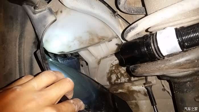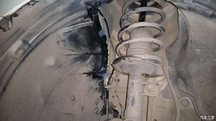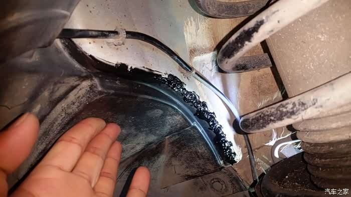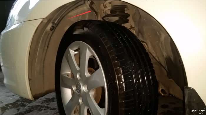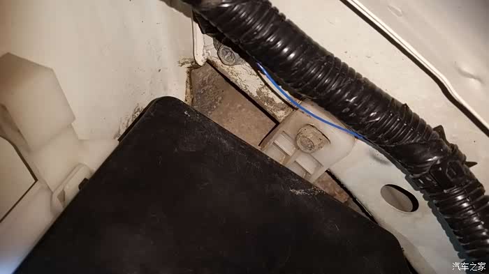 轩逸经典发动机舱保险丝盒子底下渗水,修补左前轮挡泥板.