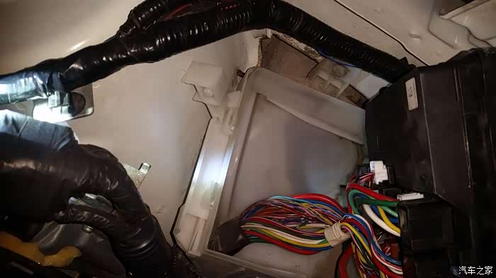 再扒开看看。。能看到发动机上面就是保险丝盒子....