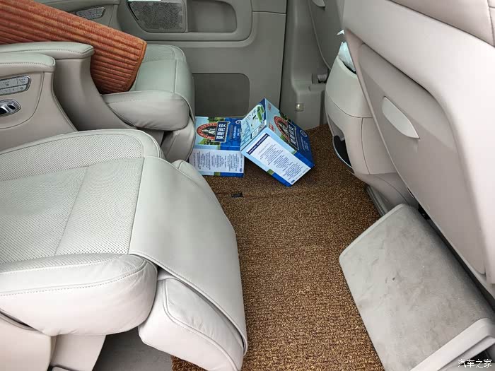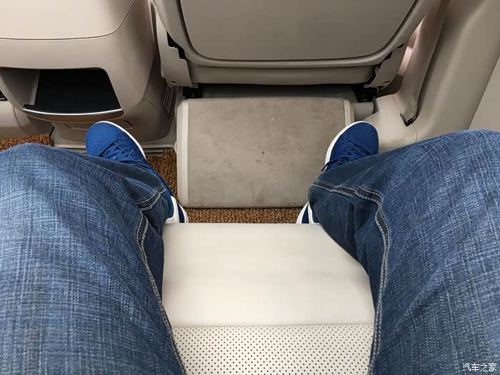 第二排的两个VIP座椅,带有电动腿托,小桌板,脚垫,座椅加热、通风、按摩悉数提供!还有专门的头枕,唯一的遗憾就是前后仍为手动调节