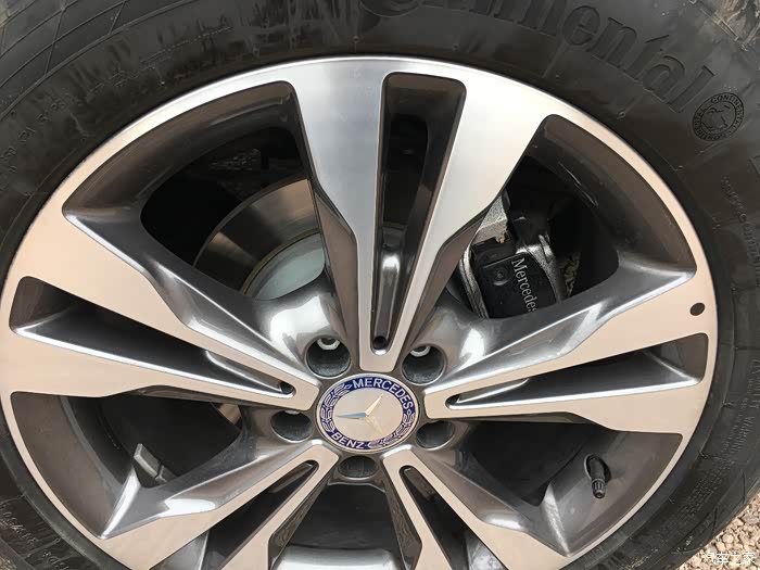 这个双五辐轮毂造型还可以,就是刹车不太给力,跟奔驰车惯有的强悍刹车力不太相符。汽车之家实测的百公里刹车距离38米不到,我也不知道他们是怎么测的,可能在极限条件下V级的刹车能力还不错吧