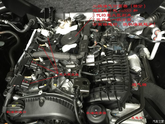 所以可以说:所有的macan2T都会有这种“渗油”的假象,不是多少几率,也不是90%,而是100%会出现这种“渗油”假象,因为密封蜡融掉液化后和周围的灰尘粘在一起,就和油污一摸一样了!下面是大众凌渡的EA888同样会出现这种“渗油”假象的,只是有些车主细心发现,有些根本不会掀开发动机盖去看。