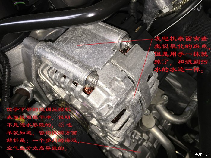 我的发电机和悬挂上下摆臂都有明显的氧化迹象,但这种东西是可以用布檫掉的,估计不会造成很严重的后果,但是能处理掉肯定要处理掉: