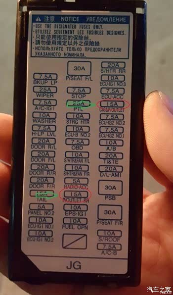 ES系,记录仪出线后走左边顶沿,走A柱,注意A柱里有气囊,可以把电源线绕到气囊底部就不影响了,然后顺着走下来到方向盘舱里,地线接个螺母即可。然后打开保险盒,才发现保险盒盖和保险丝贴的很紧,用原配的取电器(红圈内)根本放不进保险盒,只能剪了用插线式,注意要用测电笔打一下保险丝两端的触头(保险丝拔除情况下),看通电后哪边亮,接线的时候就接不亮的那端。所以各位买记录仪保险盒取电线就不要买那个无损接头了。
