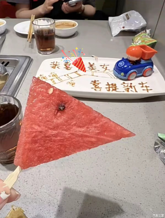 呜呜呜......居然还有蛋糕,开心的不知道说啥好了,拍完照就放进车里,准备带回去和家人分享,忘了说,这款棕色内饰也超好看,靓丽的颜色,搭配环保皮质,触感非常舒服,坐在车里也没闻到刺鼻的味道,买的炭包估计要浪费了。