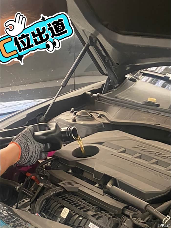 新的机油缓缓注入发动机,金灿灿的机油!给爱车注入了新的活力。