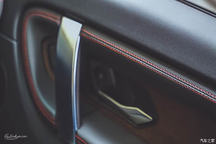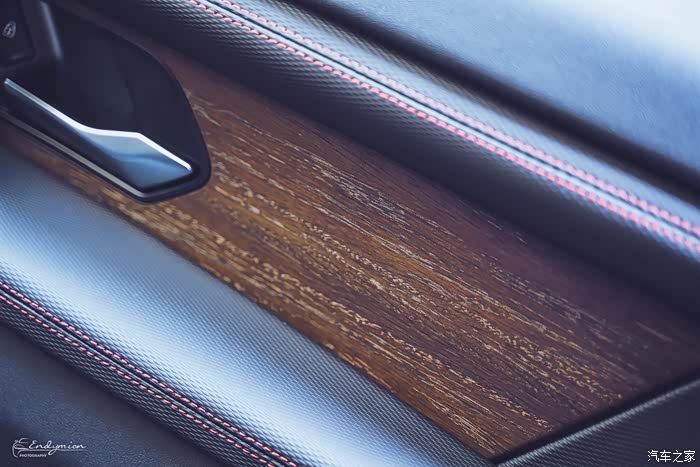 大部分被皮质包覆,木纹内饰板镶嵌在其中。