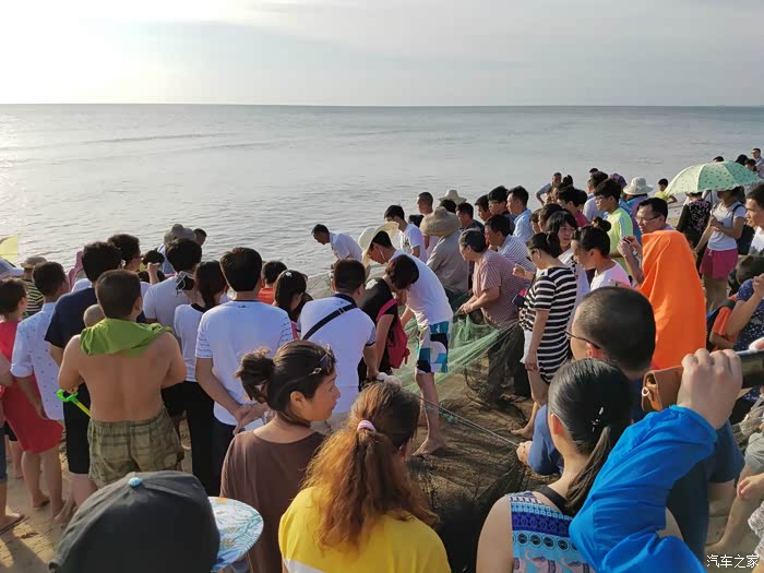沙滩捕鱼,人气非常火爆,到下午六点多了 还是爆满