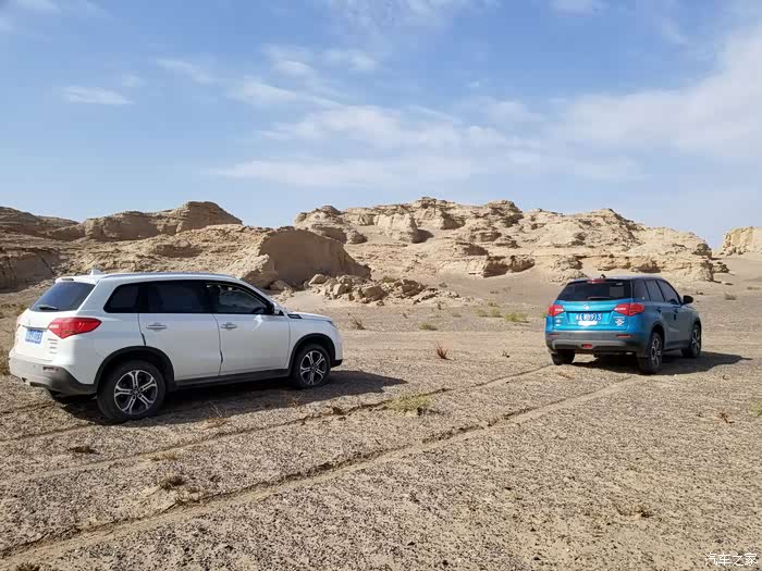 我们是从哈密雅丹地貌公园开始进入大海道无人区。因为我们没有导航,地图,标记,救援,后勤,干脆直接凭经验运气和方向直接进入无人区。里面的道路要不是戈壁滩的石子路,要不就是接近沙漠路面,要不就是各种坑。这次我们在无人区里面也没有险车,遇到沙漠路面稳住油门,不刹车,不停车,不开四驱,关闭esp.因为有的时候开了四驱反而增加了抓地力和刨地力更容易险车。不要总是依赖四驱,四驱频繁过热也是一种伤害。除非感觉行驶困难了再开启四驱。就靠惯性上去就行。遇到烂路和坑别冲着走,这样很容易伤到车身和车架或者轮胎和轮毂,顺着惯性行驶就行。这种感觉可能也要靠自己平时积累。事实证明我们更换的轮胎帮了大忙,还有就是加装的后轮差速锁也起到了作用。好就是好,不好就是不好,我只玩我喜欢玩的,不代表任何人,装与不装和我没毛的关系。。。穿越当中更没有发生任何车辆问题。维特拉的稳定性和可靠性真不错。 在一个全程最难走的沙漠路面,我用对讲机给骚蓝色说的,关闭esp.稳住油门或者手挡1档前进,别刹车,别停车。我们说好在这片沙漠路面不管谁险车,另一车先出去。然后人过来帮忙挖车,最后再拖车。万幸按照我的方法无压力平安出去了。还有几个沙漠路面。我都是给骚蓝色说。我先走。你等一下。这样我们不会同时险车。因为骚蓝色是我带出来的,我必须尽最大能力保他平安。如果我险车了,我们挖不出来或者不具备拖车,那就把我车里的油抽出来给他。他出去了可以再找救援。万幸和好运气,没险车。 我们这次也是代表了四驱suv穿越了平时只有硬派越野车才能穿越的地方。在无人区里面各种路面都能遇到。白天温度近40度,晚上零下几度到10几20几度都有可能。我们的轮胎禁住了考验,增加了避震的效果,而且效果真心不错。我们加装的后轮差速锁起到了关键性的作用,很好用。本次穿越我们的维特拉真心值,真心好用。轮胎,轮毂,车身,车架以及配件,机器等在维修厂看完之后所有完美。 去年买车试驾车是两驱我开了5分钟就订四驱版本。因为我知道我需要撒。没有买吉姆尼是因为太小,我长途穿越没办法睡在车里,而且今年吉姆尼换代。超级维特拉在我们这里一年才卖20多辆。而且快停产了。但是超级维特拉和吉姆尼都是好车。买维特拉是因为我觉得现在它已经符合了我的需求。素车开了一段时间。我觉得有欠缺。那就尽量在不改变或者改变一点的基础上完善它。如果说维特拉的缺点那就是为了面子别买它。还有它的最大缺点就是作为一个四驱车油耗竟然这么低。没有四驱车该有的油耗