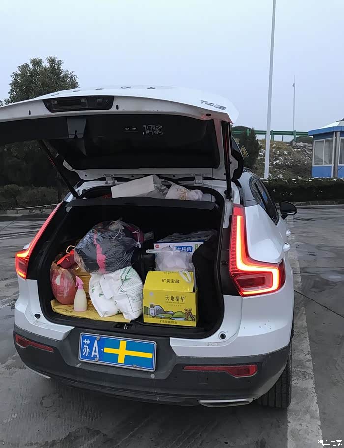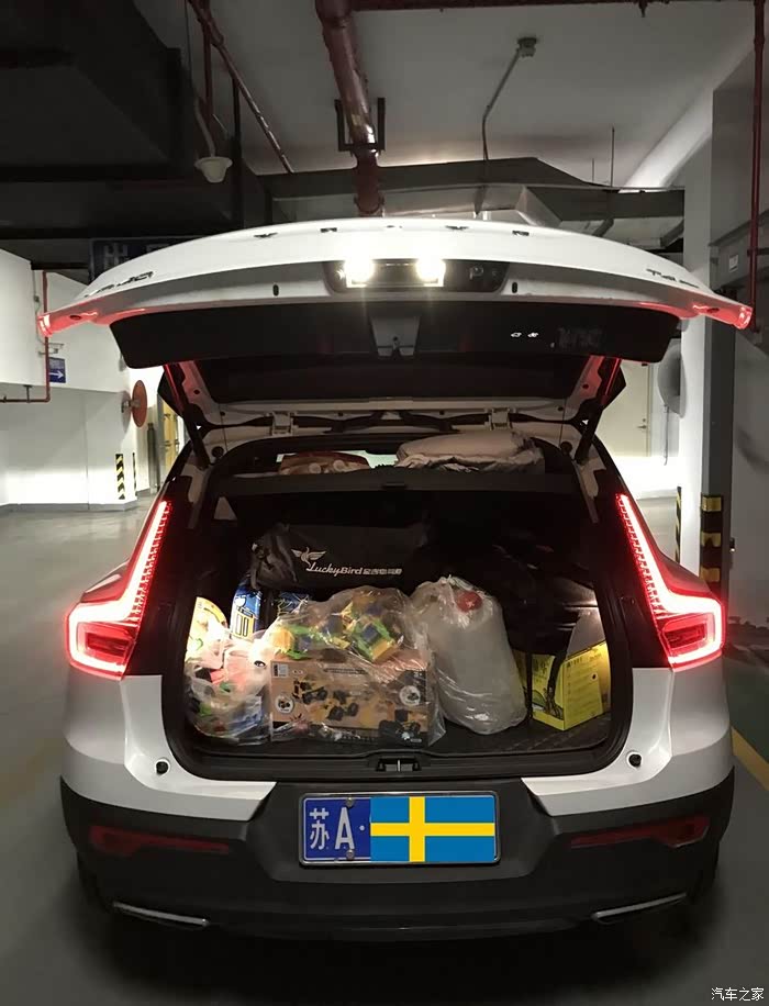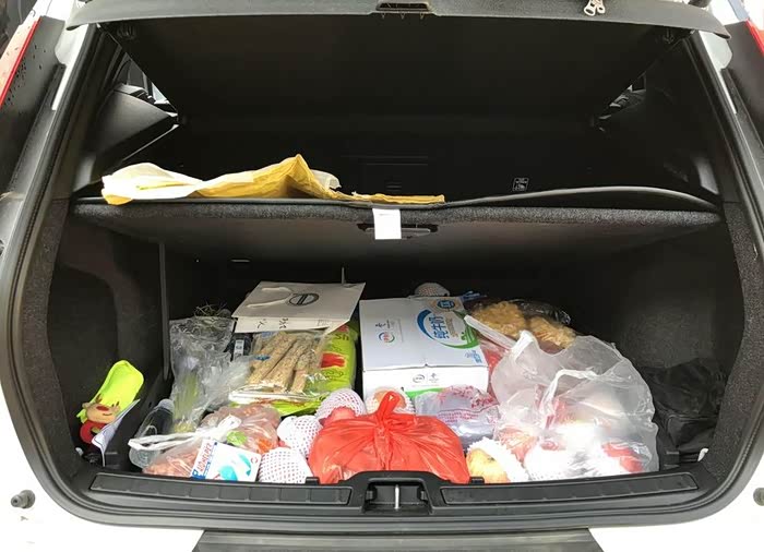 要带的各种打包小包塞满后备箱,把红牛饮料放在驾驶位门板侧,方便自己随时取用。40的后备箱算是比较高的,SUV车身本来也高,显着空间不是特别大,其实下面还有一层,能塞很多零零碎碎的东西。