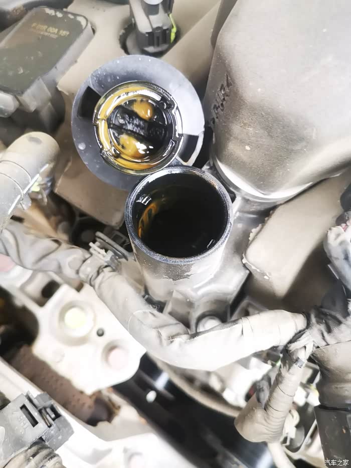 发动机油水混合后的机油盖内颜色