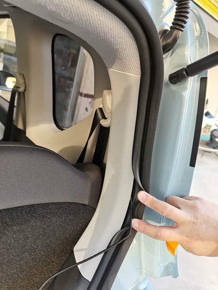 车顶到最后往这个位置出来,再沿着后门是橡胶条塞进去