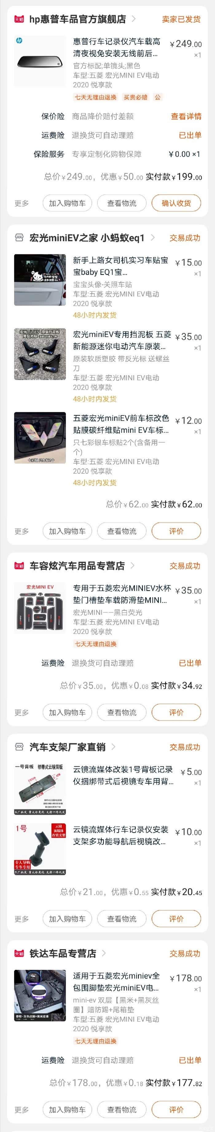 宏光mini改后视镜,记录仪倒车影像,全包脚垫,4轮挡泥板