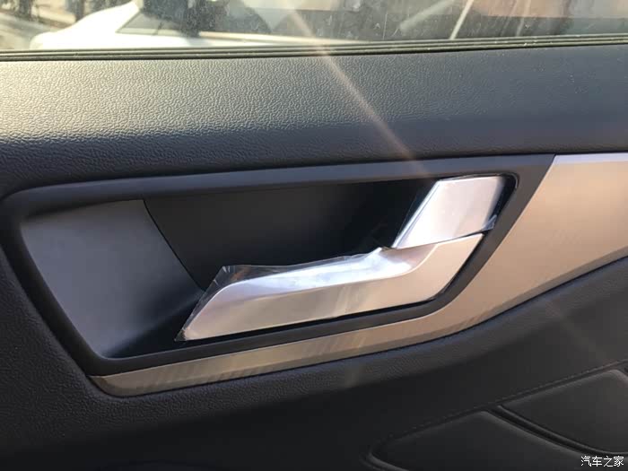 车有多新?看看门把手的保护膜就知道了,相比2015款,内饰金属材质更加宽厚,拉丝的把手周边也尽显高档次。