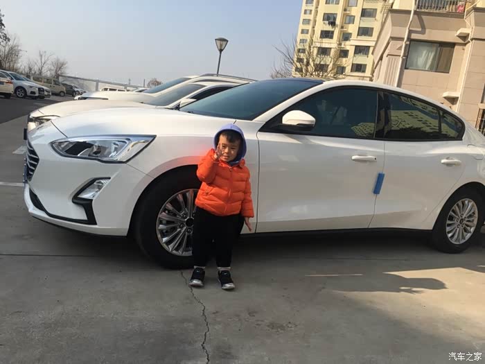 带着儿子,到4s店那里把2019款三厢福克斯提回来,此款车型为次顶配。2019款 三厢 EcoBoost 180 自动锋潮型。