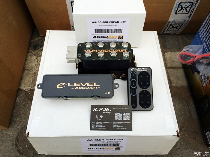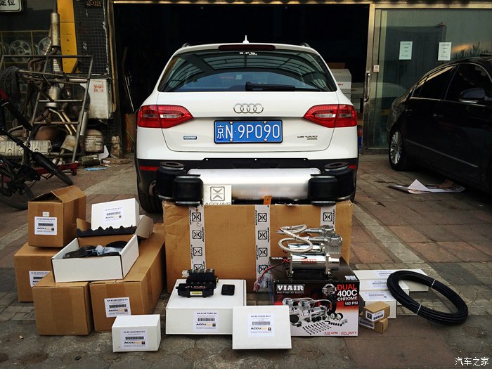 最后重中之重的来了!说喜欢这车的姿态,说的是低下来的姿态,AR趴下来可太美了。但是对于综合性能这么强的一款车,绞牙避震器明显不是适合他的,我还要下地库,还要带家人游山玩水,那么一套好的空气避震器是最明智最正确的选择,空气悬挂可以过滤行驶期间路面的高频振动,底盘升降对于全路况车型显然是必须的,A6 Allroad新款老款都标配,A4由于定价问题所以没了这套配置,买车的时候我就觉得应该还原这一配置。选择气动品牌的期间我也彻夜不眠做足了功课,理智消费和只选对的是我的一贯作风。汽车摩托车包括自行车,以我多年的经验绝对是一分钱一分货,你可以选择性价比好的,但最贵的他一定是质量和功能最好的。气动控制系统不用说,世界上公认最具人机交互感,最简单控制,最精确的绝对是美国ACCUAIR了,四轮独立,无极调节,3段记忆,带自动水平(你设定的高度永远不会变,不论你是载人还是拉货),还有可以选配i-level手机WIFI控制模块,这个炫了,经常站在车外给朋友演示,那时候虚荣心爆棚啊,相信每个ACCUAIR的用户都当着很多人臭显摆过,哈哈。桶身和气囊最开始也是直奔顶级美国AIRLIFT,几十年的老品牌,时间验证过的绝对不会错,直到有一天优酷看了ACCUAIR官方的一个视频,山路测试S4,新产品,针对于奥迪B8底盘开发的气囊套件,Audi b8 sport kit,套装包含顶配的ACCUAIR控制系统,还有原装位的所有支架,传感器,气囊!赞了!就是他吧,不破坏原车设计的改装一直是我所推崇的。视频送上!