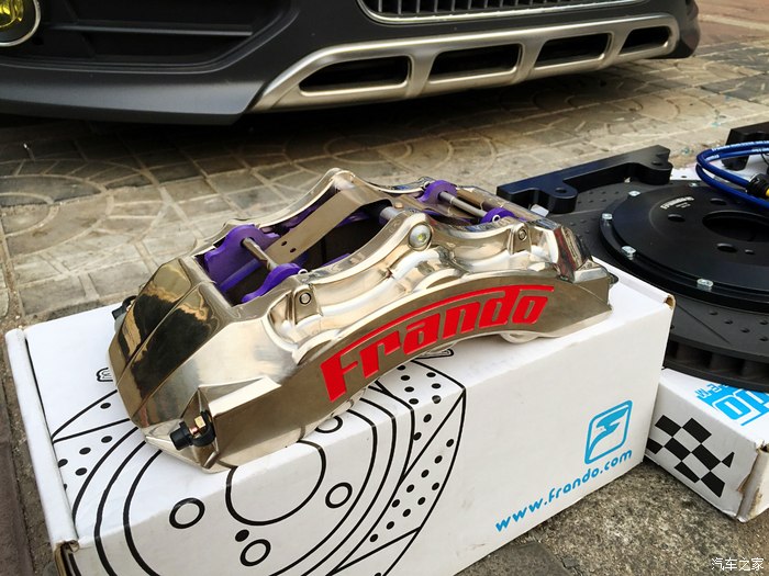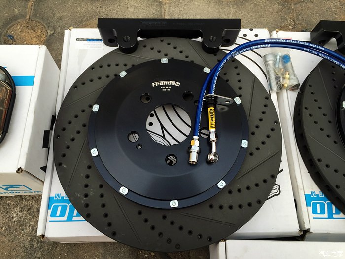好了,在3月底,毒物终于到货了,FRANDO锻造6活塞刹车,355mm打孔划线盘,对于Airroad降服300匹是个保障,铁氟龙材质刹车钢线,7075材质HUB及桥位,完整到每一刻螺丝,真是工艺品做工。在骚黄和镀镍之间犹豫了两天,最终选择后者,我还真是个有品位的人!
