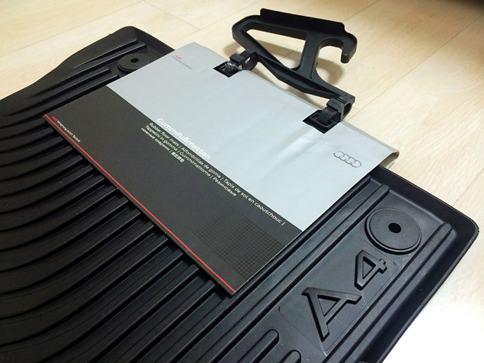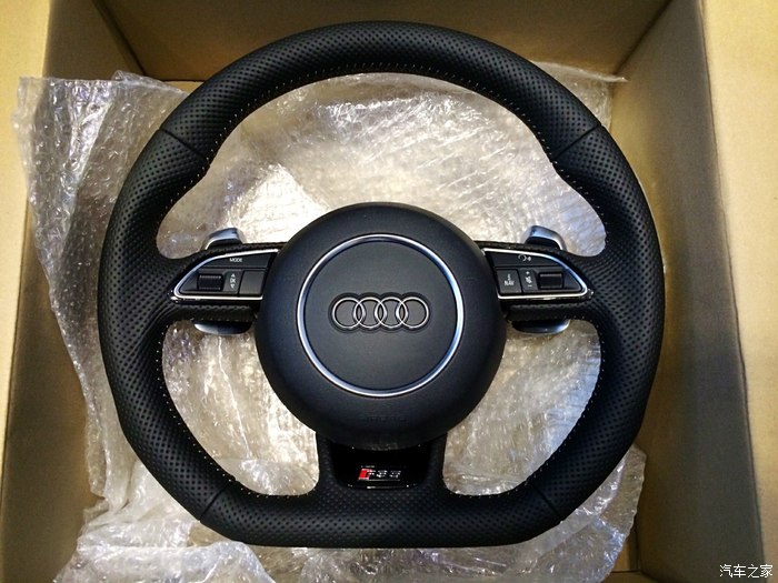 早在决定买车的时候RS的方向盘和原厂橡胶脚垫就订回家了,开习惯了GTI的方向盘,圆形的已经接受不了了,RS方向盘严重推荐啊,手感无敌了,该粗的地方粗,该细的地方细,真是谁用谁知道,而且Allroad原厂不带换挡拨片,完美了。橡胶脚垫个人觉得在北方必备,雨雪天气好清洗,有孩子了撒点东西也不怕,强烈建议买原厂的,有零件号可以订到,那用料和品质和国内作坊的差的不是几个级别。PS:替换下来的原厂真皮方向盘,全新的啊,有需要的呼叫我啊。