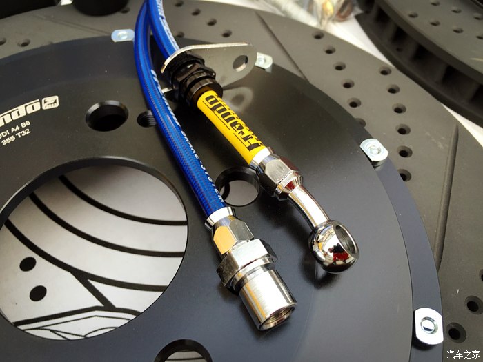 前刹车安装之后不到一周,后刹车升级套件也到位了,FRANDO 350mm加大盘套件,包括划线打孔通风盘,加大桥位,为了保留原厂电子手刹,没有选择4活塞套件,但是不要小看加大的尺寸,制动力臂加长对力道绝对是质的改变,刹车片也升级了摩擦系数0.46,温度600度的高性能型号。全车刹车油更换为MOTUL Dot5.1系列,高于原厂Dot4标准!