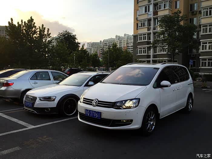 继续插播应该发在另一个论坛的内容,随着意外摇中了一个购车指标,购置了第三台爱车,为了宝贝女儿和一家人置办的大白胖子,葵女王"s保姆车,顶配大众夏朗。大众奥迪情节在选车的时候起了至关重要的作用,秉着动力操控为先,放弃了GL8,不要日本车,放弃了新款奥德赛,并在提车提车之后迅速的升级了17寸旋压铸造轮毂和倍耐力防爆轮胎。对了,还有最主要的标配升级项目,一阶程序,265匹,350扭矩达成,2吨多的7座车,2.0T直喷涡轮增压,6速DSG双离合变速箱,加速7秒多,四轮独立悬挂,三门电动,三区自动空调,自动驻车等等,好吧,我不是来卖车的。幻想一下城市主道行驶中,一个本不该出现"大面包"的位置出现了一台白色夏朗,嘻嘻,想想就醉了。。(别以为Allroad内容结束了,看看进度条就知道了,继续看吧~)