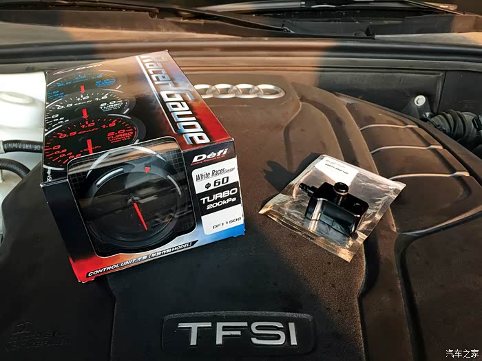 装进气的当天,我的百达翡丽也到了,噢不,我的涡轮表也到了!日本SEIKI精机工业旗下高端DEFI牌赛用仪表,汽车仪表中的百达翡丽,配合SHADOW for EA888 GEN3专用真空底座,实时监控涡轮压力,了解引擎工作状态,自发光表盘,启动扫针自检,工作状态非常安静,配合All Car Racing的一阶段程序,持压1.3BAR,瞬压1.5BAR,动力表现稳定,心中暗暗窃喜,终于知道Allroad小心脏的工作压力了,推荐给改装过动力的车友们,这东西不光能看增压值,真空漏不漏气也可以监测,让懂车的车主对爱车心中有数。