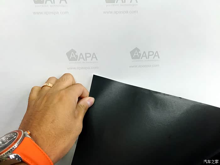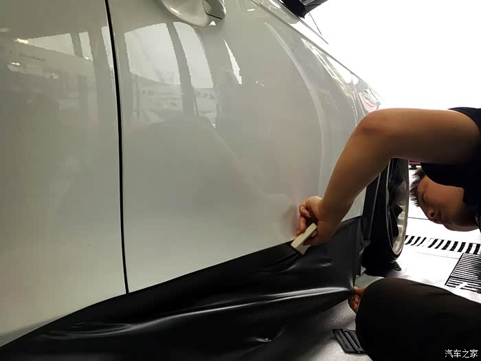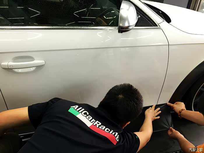 上面一张图,细心的车友有没有发现车身侧面线条的变化?好吧,我拿出来分享。选择了国际顶级贴膜品牌APA,要知道这个品牌的超跑案例是非常多的,这个铁灰色跟Allroad包围颜色色差也是极小,后门上LOGO是用雕刻机镂空出来的,细节凸显态度!