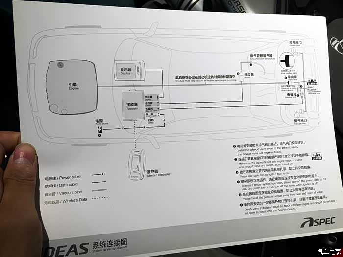 简单介绍一下ASPEC这个品牌,华裔老板,美国品牌,工厂在国内东莞,十余年专注排气制造,堪称业内顶级品牌,不要跟我说什么什么欧美大牌,这里我不崇洋媚外,我只选择对的,做工品质都是业内一流,其中我选择的iDeas阀门系列,无论设计还是实际使用效果都非常满意,这里我又装B的选择的干碳尾嘴,请大家允许我的小装,因为天蝎真没有出咱们车的排气,关于干碳纤维的尾嘴,这个是iDeas用户的专享,虽然贵点,但是不夸张的说,品质堪比天蝎!具体细节我把随拍的照片分享给大家品鉴。另外让我这个急性子很爽的是ASPEC国内工厂的货期,从下订单到工厂出货发到北京,收到货10天而已,五年十五万公里的售后质保,买的放心用的舒心啊!