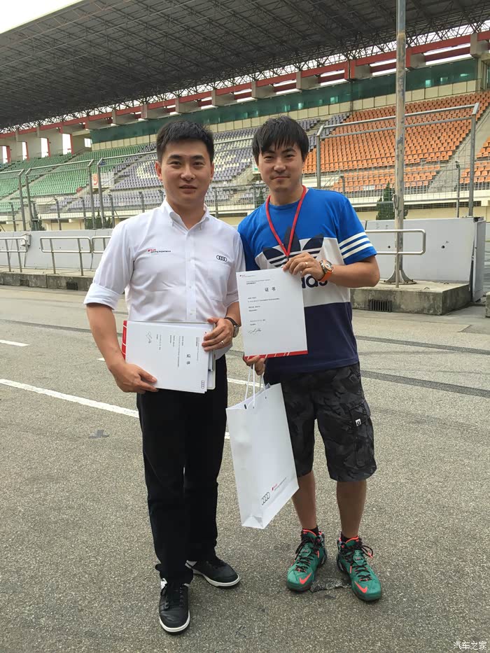 2015年5月份,受奥迪邀请,奔赴珠海赛道进行ADE奥迪运动车型驾驶培训,受训车型新款R8 V10,本应该发到R8论坛的,嘻嘻!顺利拿到培训证书,教官是中国著名职业车手江腾一,颁奖的是德国鬼子,挺风趣的大哥。(赛道视频优酷审核中)