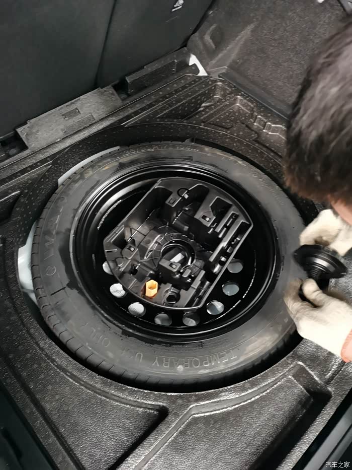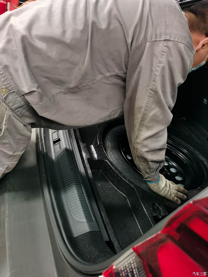 我一直觉得备胎是非常重要的。有这个东西吧,心里踏实,可能这东西也用不上,但是没有心里没有安全感。我那点积分还等着兑个尾门,所以一直没舍得换备胎。前些天当地店里搞活动买了一个备胎。安装的过程其实很简单,我觉得如果有工具我自己也能装上