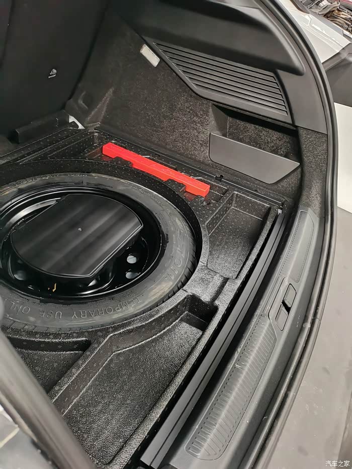 首先把后备箱垫拿走,下面就是放后备胎的空间,加装之前都是这个厚厚的泡沫,这个泡沫虽然没啥用,不过质量挺好的。