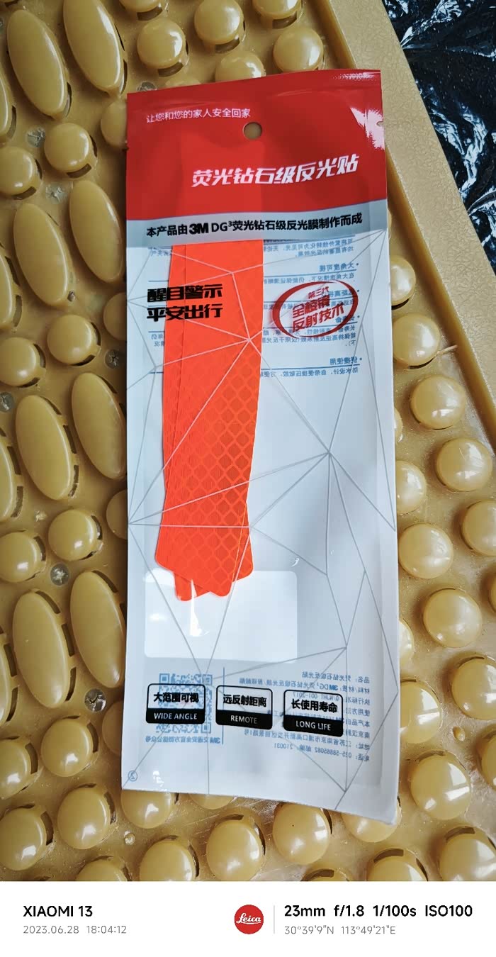 几元钱在天猫官方授权店买的正宗3M反光轮眉贴,橙色的,正宗3M像胶片一样又厚又硬,杂牌像纸张一样过段时间可能会掉,感觉轮眉贴又增加了缤智的颜值,