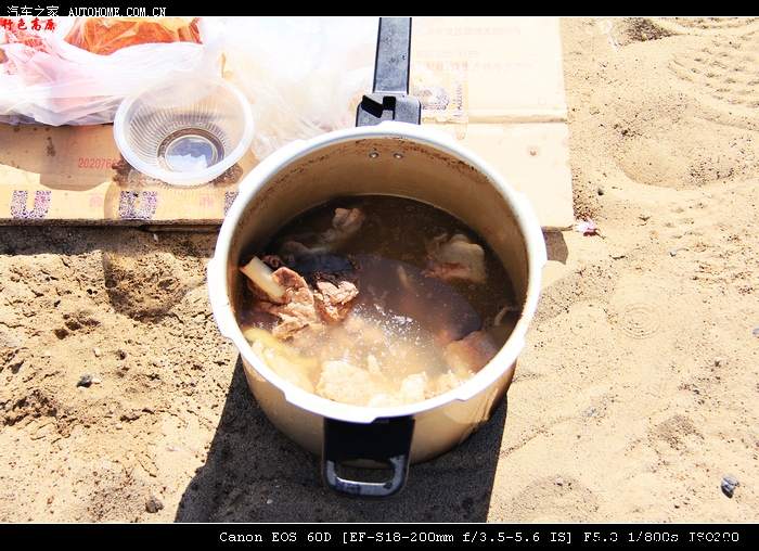 这就是午餐,一锅羊肉,现煮的,试想在大漠深处能有一锅热乎乎的羊肉,那是啥概念?!