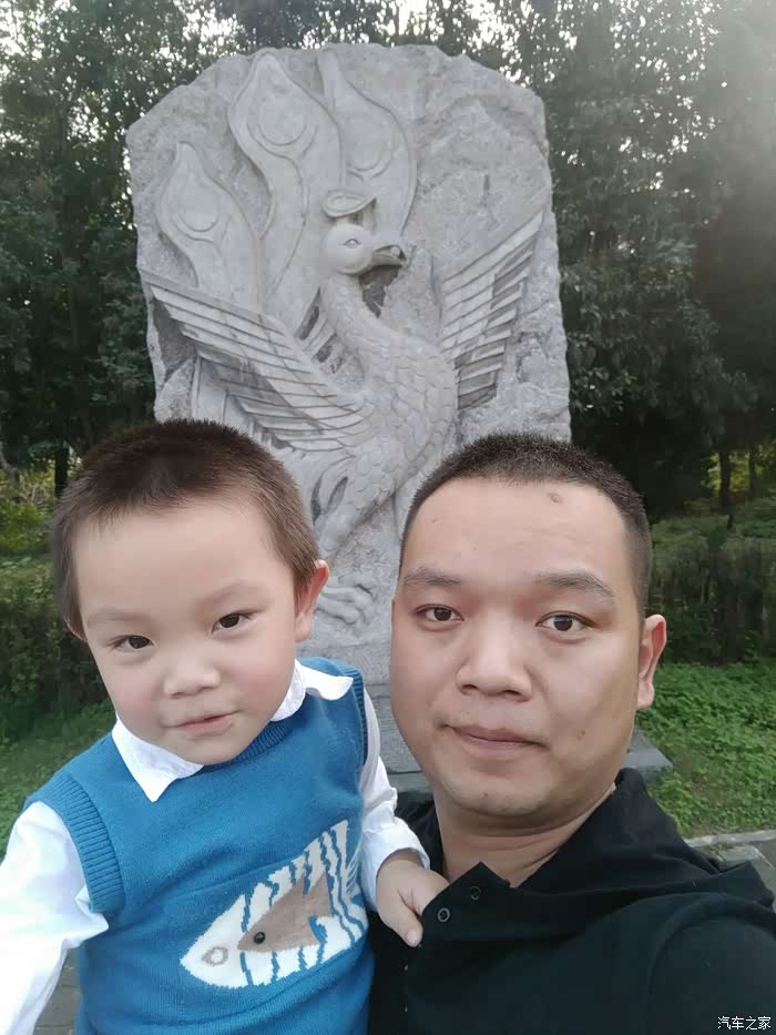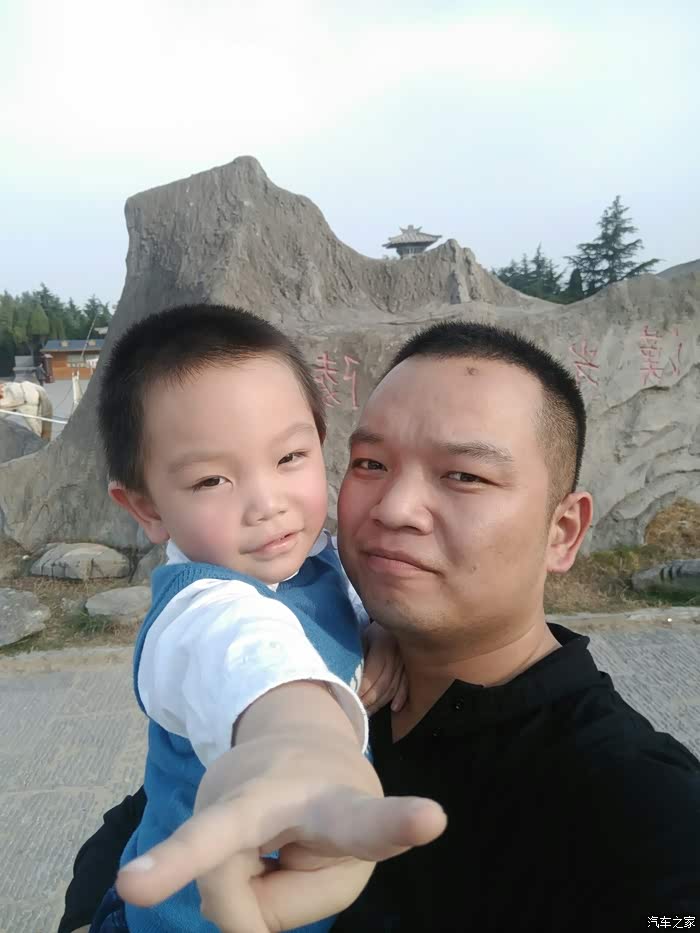 一路抱着儿子,累并快乐着