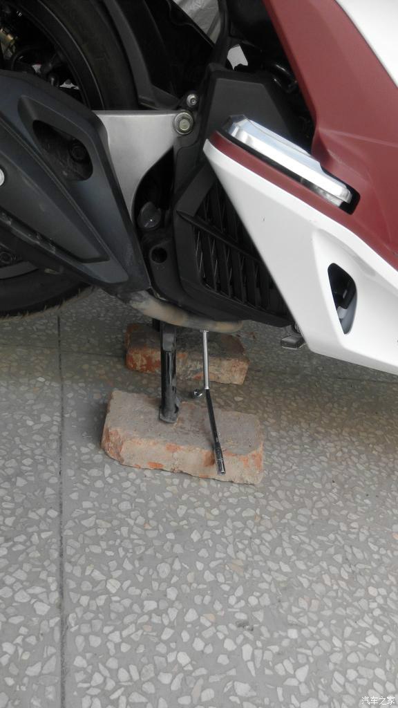 这点有个问题,大撑支起来油盆放不到跟前,只能侧支,手扶正车子放油了