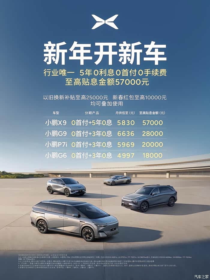 小鹏X9、G9、P7i、G6全系加入免息阵营,其中旗舰车型X9贴息最高达5.7万,相当于省出一辆五菱宏光MINI的钱!G6、G9等车型也能省2.8万利息。重点是:不用掏首付,直接开走新车,月供低至3000+,堪称“打工人福音”。