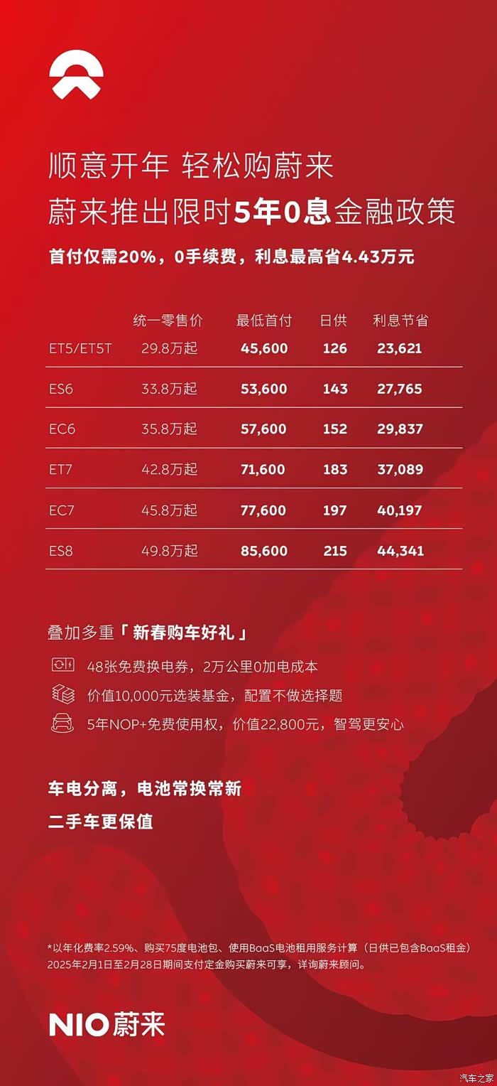 2. 蔚来:首付20%起,5年0息还能“白嫖”换电