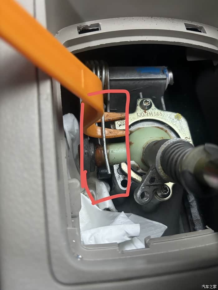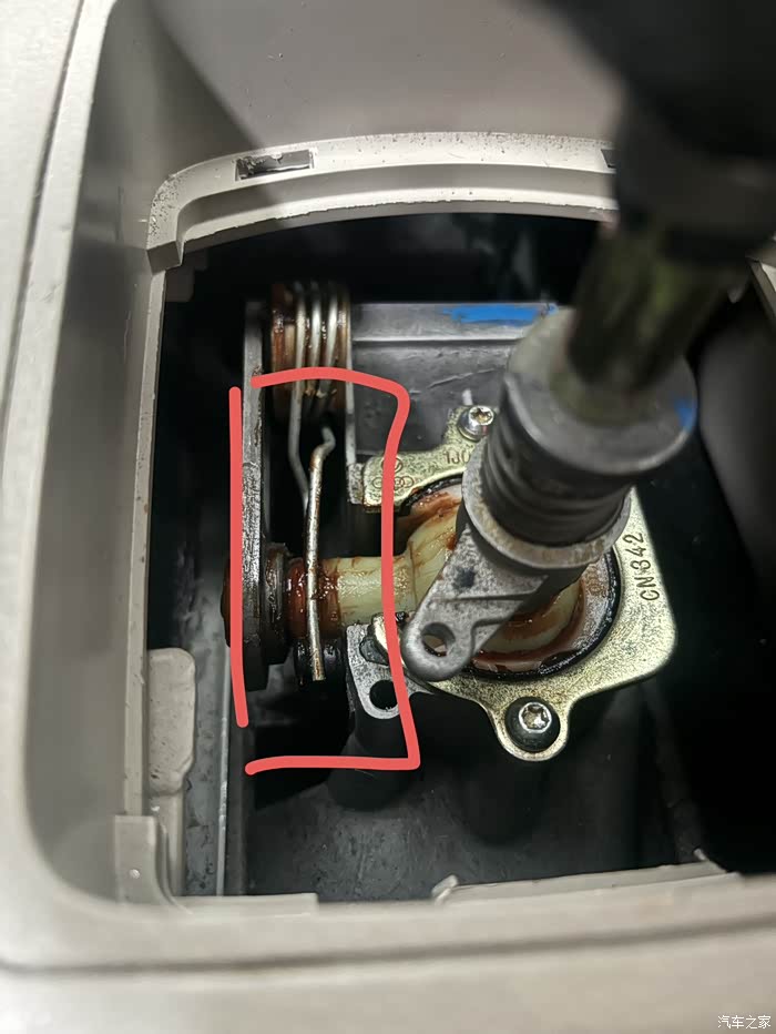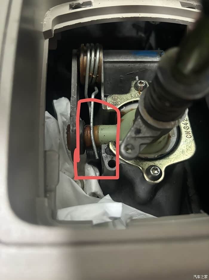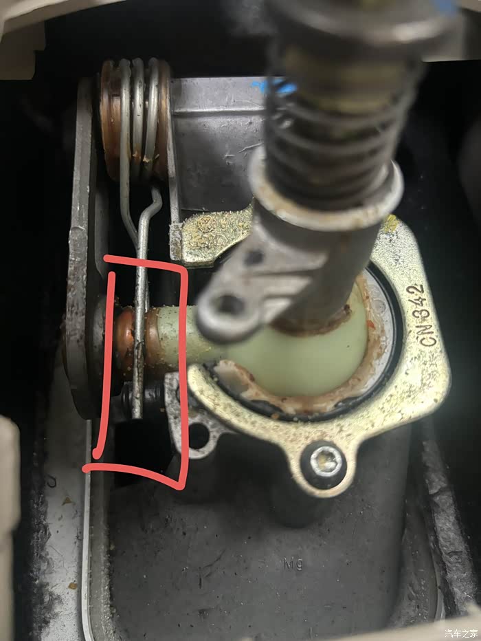 2021年开始出现挂一档和倒档困难,论坛里很多这种情况的,说是通病,所以也就没有找4S根治,大多数说法都是这个弹簧的问题,不在黑色橡胶上。处理方法很多,有夹一款泡沫(海绵),有掰弹簧圈的,也有掰弹簧末端的。今天再次拉开波棍套,把弹簧掰了一下,让弹簧在挂一档后也不会滑出橡胶外。