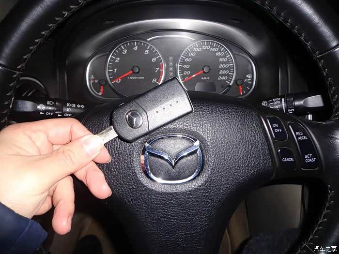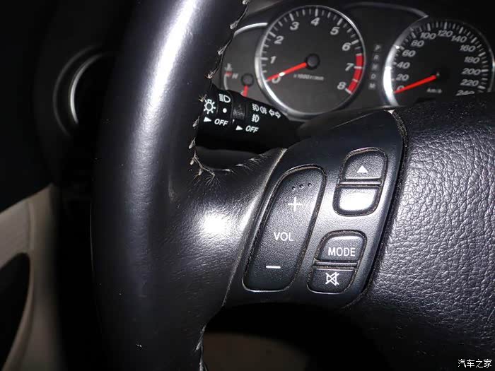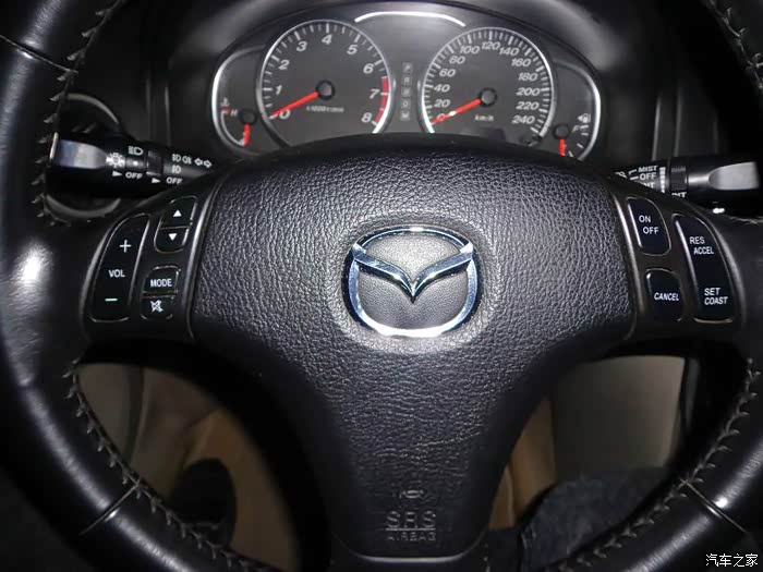 方向盘中间的马自达LOGO做工也是比阿特兹强太多,七年了,上面的镀铬部分到现在还是一点没掉色,而阿特兹可是一年不到就掉色了,唉。。。