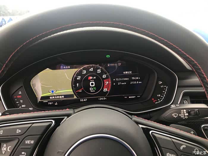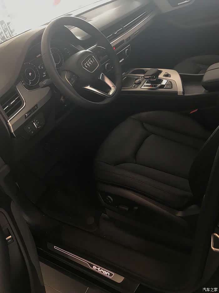 混动版是现车,没标配空气悬挂,是个遗憾,但底盘质感Q7还是挺优秀的,高速过减速带整体感很强,比锐界确实强两个级别。如果有空悬也许会更舒适。方向盘一如既往的奥迪,很轻很舒服,没有马自达和宝马的精准,但非常易于上手操作,几个女生帮我开过这台车,说根本不像外观看起来那么大那么不好驯服的感觉,视线看出去前引擎盖并没有显得很宽大,很易于操控。